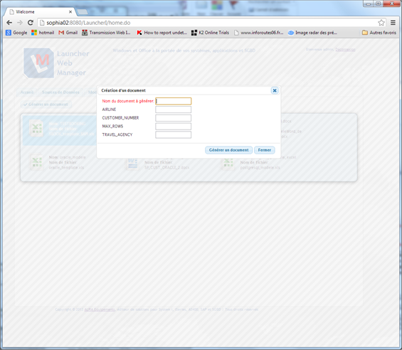 Dans le cas d’un modèle basé sur une source de données SAP BAPI, il est proposé lors de la génération du document de remplir les paramètres du BAPI.