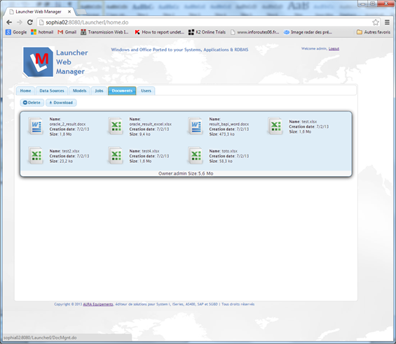 The ‘Documents’ tab let you manage the generated documents, you can either download or delete them. Users having a ‘user’ or ‘manager’ role can only see their own documents. The ones having the ‘admin’ role can visualize, delete, or download, all the users’ documents.